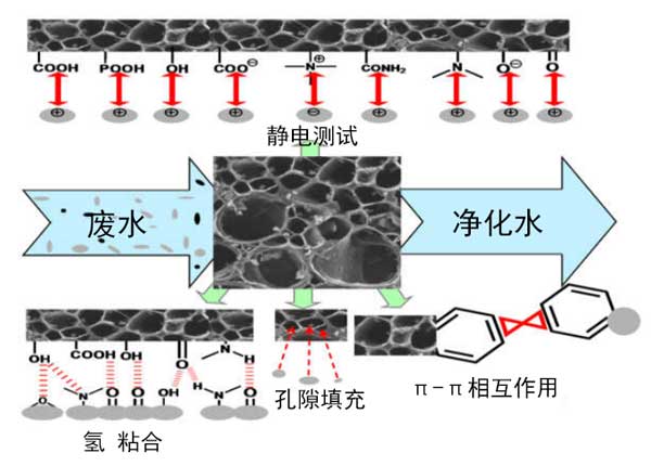 圖2:污染物與活性炭相互作用的推測(cè)機(jī)制。