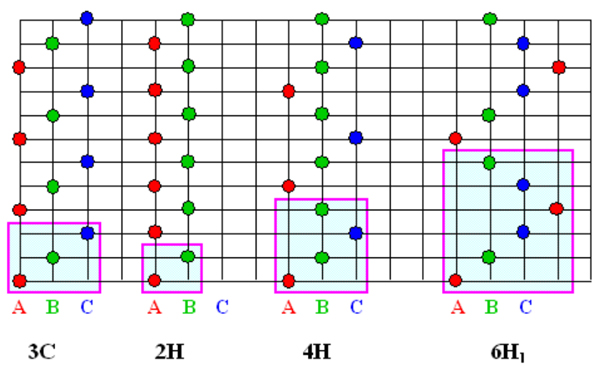 圖1:顯示了原子可以采取的不同排列方式來形成碳化硅。