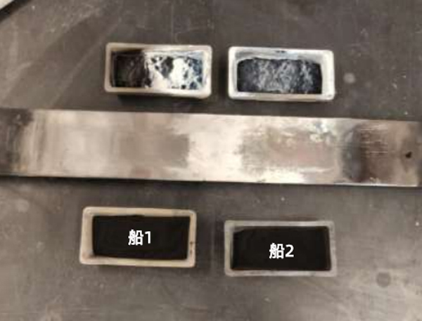 氣體從右向左流動,材料最常沉積在圖像中的船1上。這說明材料從船1運送到船2并與樣品表面的碳發(fā)生反應(yīng)。一旦樣品表面被碳化硅擠滿,碳化硅就不能再與碳反應(yīng),而是將碳化硅吹出爐外。