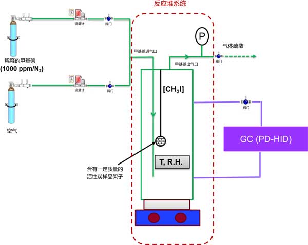 圖1:用于氣相間歇條件下活性炭吸附甲基碘的實驗裝置。