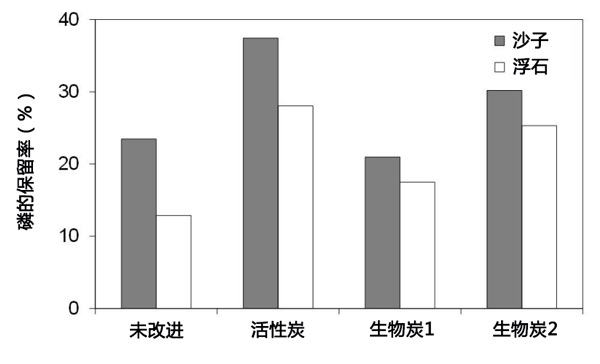 圖4:過濾柱實(shí)驗(yàn)中的磷(正磷酸鹽)保留率。