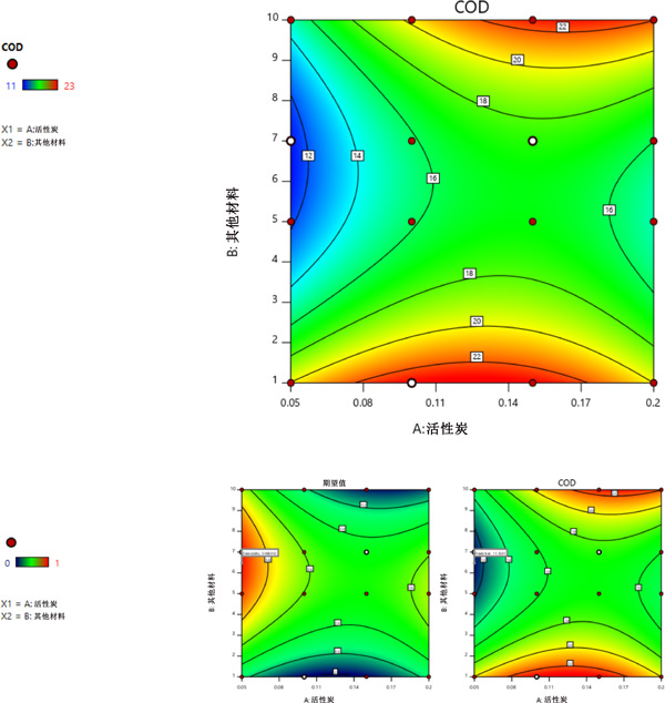 圖2:活性炭低濃度廢水處理過(guò)程的合適疊加轉(zhuǎn)換等值線圖。