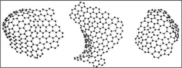 活性炭的具體原子構(gòu)型尚不清楚,盡管它在水和空氣凈化方面具有重要的商業(yè)意義。通過熱解法制備的碳的構(gòu)型。她指出,這些碳可以分為兩個不同的組,即石墨化和非石墨化;钚蕴垦苌龅奶际欠鞘,這意味著即使在非常高的溫度(≥3000℃)下,它也可以轉(zhuǎn)變?yōu)榻Y(jié)晶石墨。中子衍射研究表明,非石墨化碳具有類似于富勒烯的骨架,如圖1所示。這種配置將闡明碳的微孔結(jié)構(gòu)及其其他特性。從x射線和中子衍射研究中獲得的衍射數(shù)據(jù)已根據(jù)由非六角環(huán)組成的結(jié)構(gòu)進(jìn)行了闡明,但無法提供任何明確的證據(jù)表明原子以五角環(huán)或六角環(huán)的形式鍵合。