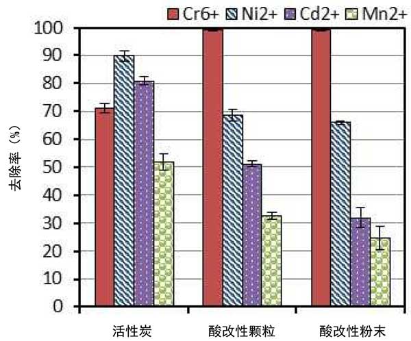 來自采礦活動、工業(yè)和城市廢物以及垃圾填埋場滲濾液的重金屬對地下水和地表資源造成嚴(yán)重污染。重金屬對水的污染可能來自不同的來源。Cd2+,Cr6+,Mn2+,Ni2+被引入到水資源和環(huán)境中的主要來源是廢家用電池和充電電池、電鍍、制革工業(yè)、化肥、石化產(chǎn)品和煉油廠廢水。本文研究了使用酸改性和未改性活性炭吸附從含有Ni2+、Mn2+、Cr6+和Cd2+的季銨鹽水溶液中競爭去除金屬離子的方法;钚蕴坑孟跛嵫趸,呈顆粒狀和粉末狀,并測試其對金屬離子從水溶液中的競爭吸附。
