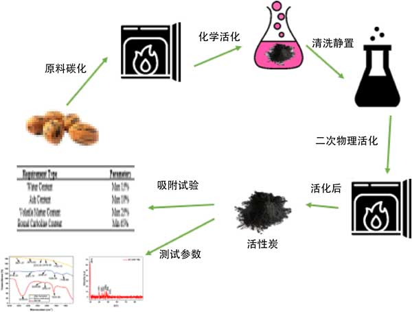 果殼用作生產(chǎn)活性炭的原料。在果殼廢料的合成過程中,第一步是將殼在陽光下干燥3小時(shí)。然后將干燥的果殼在350℃的溫度下碳化2小時(shí)。隨后使用研缽將碳化的果殼研磨成粉末,然后過100目篩。樣品制備首先稱量肉豆蔻殼粉末和預(yù)定的1M-HCl溶液。接下來,用1M-HCl溶液將粉末活化24小時(shí);罨,活性炭過濾并用蒸餾水洗滌,直至pH值變?yōu)橹行。一旦pH值為中性,活性炭就會在110℃的溫度下煅燒1小時(shí)。煅燒后,來自肉豆蔻殼的碳在惰性氣體氣氛(氮?dú)?中在600℃、650℃和700℃的溫度下退火2小時(shí)。然后用蒸餾水洗滌所得結(jié)果以除去金屬化合物。氨(NH3)水平降低最多的樣品將根據(jù)下面的圖1進(jìn)行表征。