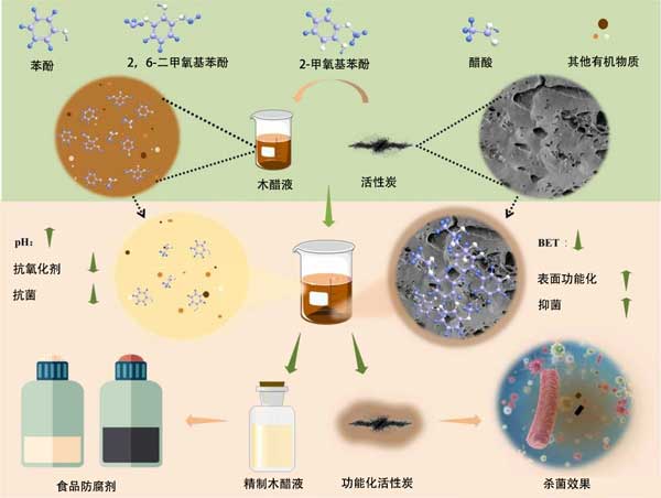 在吸附過程中,木醋液中的特定化合物會融入活性炭的結(jié)構(gòu)中。這種融入可賦予活性炭抗菌性能,使其可用于過濾和吸附以外的應(yīng)用。