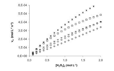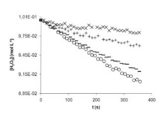在圖2中被視為在活性炭的質(zhì)量發(fā)生改變比初始反應(yīng)速率時(shí)過氧化物的初始濃度是,(a)中1,60x10 -1 mol L-1和( b)在298K的溫度下為7.92×10 -2 mol L -1。相對于活性炭的質(zhì)量-體積獲得反應(yīng)順序是一個(gè)和表觀速率常數(shù),ķ VEL,是約0.11毫升克-1小號(hào)-1在298 K(0.12毫升克-1 小號(hào)-1時(shí)[H 2 ö 2 ] 0 = 1,60x10 -1 mol-1和0.10毫升克-1小號(hào)-1時(shí)[H 2 ö 2 ] 0 = 7,92x10 -2molL -1)。