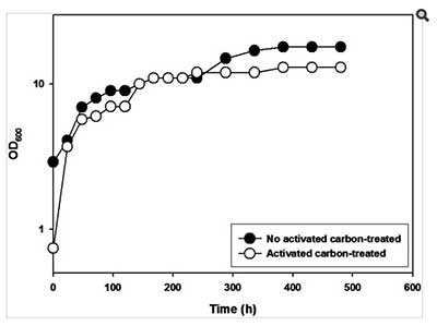 據(jù)報道,酸水解產(chǎn)物中的呋喃衍生物(糠醛和5-羥甲基糠醛)和酚類化合物是有毒的并且可以抑制生物乙醇生產(chǎn),在酸水解產(chǎn)物中發(fā)現(xiàn)約0.6-3.0g / l的水平。以前的報告回顧了酸性水解產(chǎn)物的治理。活性炭處理導(dǎo)致呋喃衍生物減少92%,5-羥甲基糠醛減少68%,酚類化合物總量減少約1.25-0.5克/ 升。通過活性炭處理從水解產(chǎn)物中去除有毒物質(zhì)是非常可靠的。