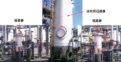 活性炭可以由椰子殼,褐煤,煤,瀝青和木質(zhì)材料等制成。源將確定其可吸附的污染物的吸附容量和尺寸分布。就配置而言,活性炭可以是粉末或顆粒狀的;钚蕴窟^濾系統(tǒng)通常用于除去雜質(zhì),使得胺溶液可以適當?shù)赜糜谟行コ廴疚。如果沒有從胺溶液中適當?shù)爻ルs質(zhì),則在工廠中可能發(fā)生起泡,腐蝕和其它問題,導致相當大的負面技術(shù)和經(jīng)濟效果。通常,瀝青類型的活性炭被選擇用于胺單元,因為其在碳晶粒內(nèi)具有小,中和大孔的平衡。這種分布通常最適合具有廣泛分子尺寸污染物分布的胺流。典型的活性炭過濾系統(tǒng)如圖2所示。