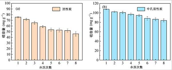 為了比較水洗再生對脫硫后活性炭樣品的影響,研究了硫容量與活性炭和中孔活性炭的循環(huán)次數(shù),如圖3所示。活性炭的工作硫容量總體呈下降趨勢,第一次脫硫時為75.6 mg·g-1,第8次循環(huán)為46.2 mg·g-1,減少率為40.5%,如下圖所示。圖3a。結果表明,飽和吸附劑對H 2 SO 4的不完全解吸對循環(huán)SO 2有明顯的負面影響活性炭的吸附性能。用中孔活性炭觀察到類似的結果。然而,中孔活性炭的硫容量在8個循環(huán)后降低了22.0%,遠低于微孔活性炭的降低速率,這表明互連微孔和有序介孔的特性促進了H的解吸。2 SO 4并減少硫容量的減少。