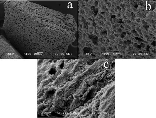 我們通過活性炭的SEM可以看到表面的多孔結(jié)構(gòu)(圖1a)。此外,在用酸浸泡后,在活性炭表面可以觀察到大量的多孔和松散結(jié)構(gòu)(圖1b和c)。由于活性炭具有較大的表面積,多孔結(jié)構(gòu)和高活性表面,因此主要用于吸附污染物。因此,活性炭的強(qiáng)吸附能力被用于磺胺嘧啶吸附實驗。