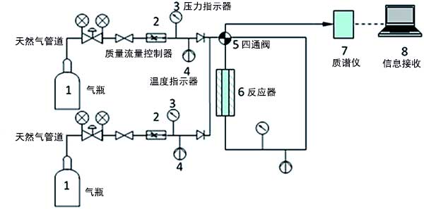 在我們之前的工作中開發(fā)了吸附裝置來測量氣體穿透曲線(圖1)。它由三個主要部分組成:準(zhǔn)備部分、吸附段和分析部分。在氣體制備部分中,吹掃氣體是高純度Ar氣體(99.999%),其用于在引入烴氣體之前通過惰性氣體管線和反應(yīng)器吹掃系統(tǒng)。吸附部分使用丙烷或乙烷在氦氣或人造氣體混合物,其通過燃料氣體管線和反應(yīng)器。這兩條線都碰到了一個四端口交叉閥。整個裝置等溫(~26℃)。閥門位置,氣體流量,壓力和溫度完全自動化,并由內(nèi)部程序控制。通過質(zhì)譜儀分析和量化來自反應(yīng)器出口的氣體。