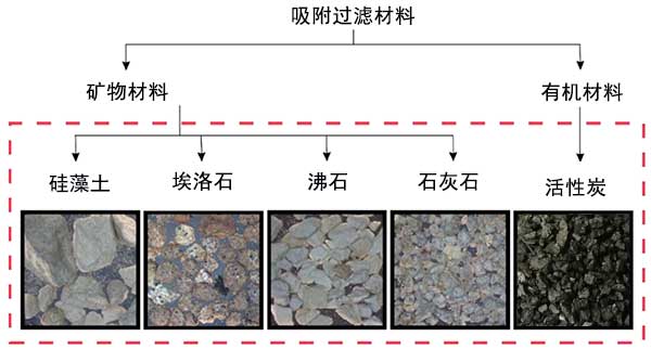 在分析中使用活性炭和未經修飾的礦物材料,例如沸石,石灰石砂,硅藻土和埃洛石(圖1)。礦物材料是不經受預處理,以確保使用最經濟上有利的材料。本期使用的活性炭是一種微孔材料,由微孔表面和體積值和相對較低的中孔表面值證明該材料的表面。硅藻土,沸石和埃洛石是中孔材料,因此其特征在于具有中間孔的平均比表面積,所述中孔具有不規(guī)則尺寸和形狀的窄裂縫形狀。在埃洛石中觀察到這些礦物中介孔的大比表面積和體積,而硅藻土的孔隙比較少,石灰石砂可歸類為無孔材料。