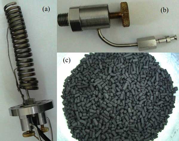 我們研究了一種氮氣活性炭吸附池的單級原型,該原型用于驅(qū)動低溫冷卻器。壓縮機的一些主要特性取決于所需的低溫冷卻器性能參數(shù),尤其是工作壓力和氮氣流量。設計構建實驗吸附池,一些組件如圖1所示。在上面研究了氮在所選活性炭上的吸附,并且已經(jīng)提出改進的Freundlich模型來計算作為溫度和壓力的函數(shù)的吸附氮的量。該模型用作計算吸附式壓縮機循環(huán)參數(shù)的基礎。吸附劑是商用顆粒狀活性炭。顆粒直徑為3毫米,以煤為基礎,由高溫蒸汽活化,具有1000的高比表面積。