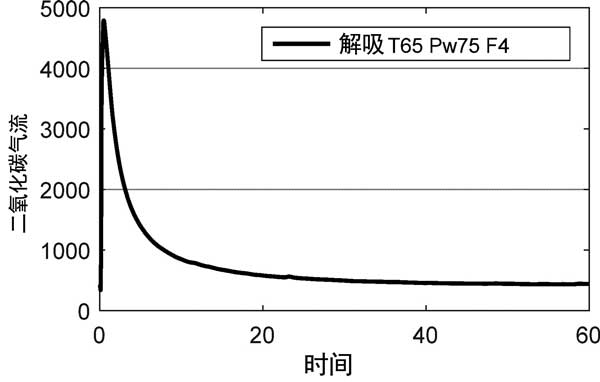 在實驗中通過在溫和溫度下的水分振蕩進行解吸實驗,以使活性炭中碳酸鉀再生回碳酸鉀倍半水合物在升高的溫度和氮氣流下的再生步驟將具有大的能量損失,使這個過程在經(jīng)濟上不可行。圖5顯示了二氧化碳濃度峰值剛好低于5000ppm。質(zhì)量平衡表明,在實驗中釋放了吸附的總二氧化碳的50%。盡管最大二氧化碳濃度對于實際應(yīng)用來說不夠高,但該實驗證明了在活性炭內(nèi)碳酸鉀倍半水合物和碳酸鉀之間循環(huán)的概念。需要進一步優(yōu)化解吸過程。