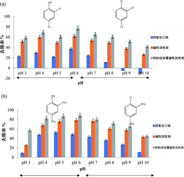 溶液pH對(duì)硝基酚類物質(zhì)的吸附影響