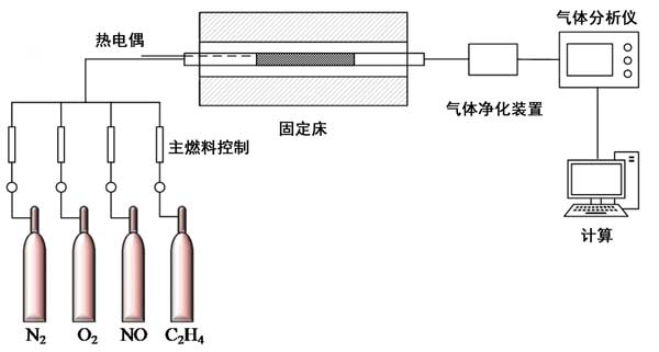 催化測(cè)試的實(shí)驗(yàn)裝置如圖1所示。將每種活性炭樣品放入固定床石英管反應(yīng)器中,該反應(yīng)器由溫控爐外部加熱。氣體流速通過(guò)質(zhì)量流控制器控制,與模擬氣體混合物調(diào)節(jié)至500ppm NO,500ppm的乙烯,3.0%(體積)Ò 2和N 2為平衡流量,總流量為1500 ml/min。在每個(gè)測(cè)試的催化劑溫度達(dá)到穩(wěn)定的設(shè)定點(diǎn)之后,將氣體混合物注入反應(yīng)器中。進(jìn)出氣中NO和NO X的濃度用煙氣分析儀分析。下標(biāo)的進(jìn)和出分別指示入口和出口的濃度。