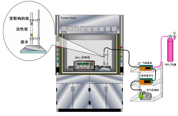 圖1:用于動態(tài)連續(xù)氨氣流量吸附實(shí)驗(yàn)的實(shí)驗(yàn)裝置。