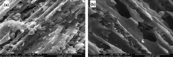進行了近距離分析以活性炭的基礎性質(zhì)。它包括水分的百分比,揮發(fā)物的百分比,灰分的量以及有機材料中可用的固定碳。再通過SEM檢測強電子束轟擊活性炭樣本時從樣本表面散射的電子來幫助分析詳細的高分辨率表面圖像。與SEM一起,EDS可以通過深入分析其表面來極大地幫助獲取有關特定樣品所含化學物質(zhì)的信息。在本次測試中,通過使用SEM和EDS,分析了在吸附機理過程中氟吸收前后的活性炭。它有助于理解紋理形態(tài)及其在吸附中的意義。數(shù)據(jù)如圖1所示。結果表明,在氟化物吸附之前,活性炭表面具有大量的粗糙度,隨后在氟化物吸收中會降低,并使表面光滑并降低了孔隙率。