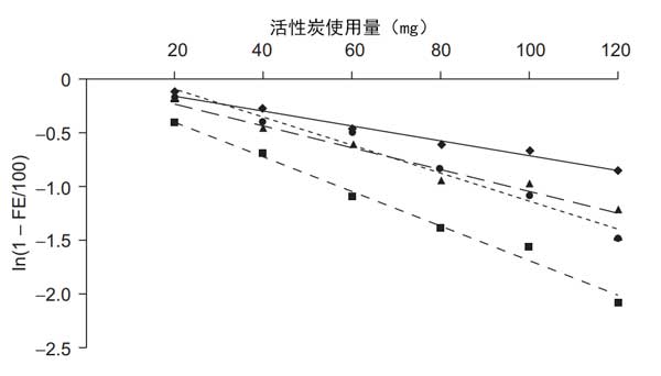 圖2:過濾效率與活性炭載量的關(guān)系。