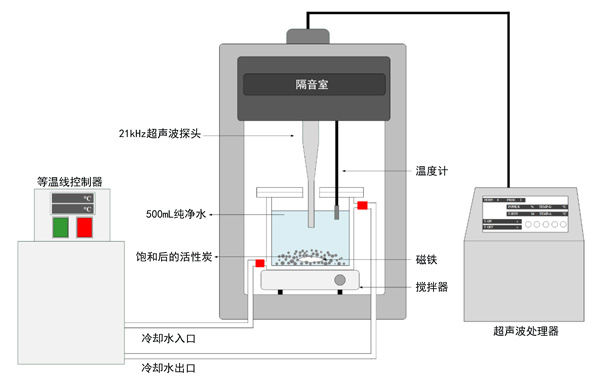 圖1:飽和活性炭超聲再生的實驗裝置。